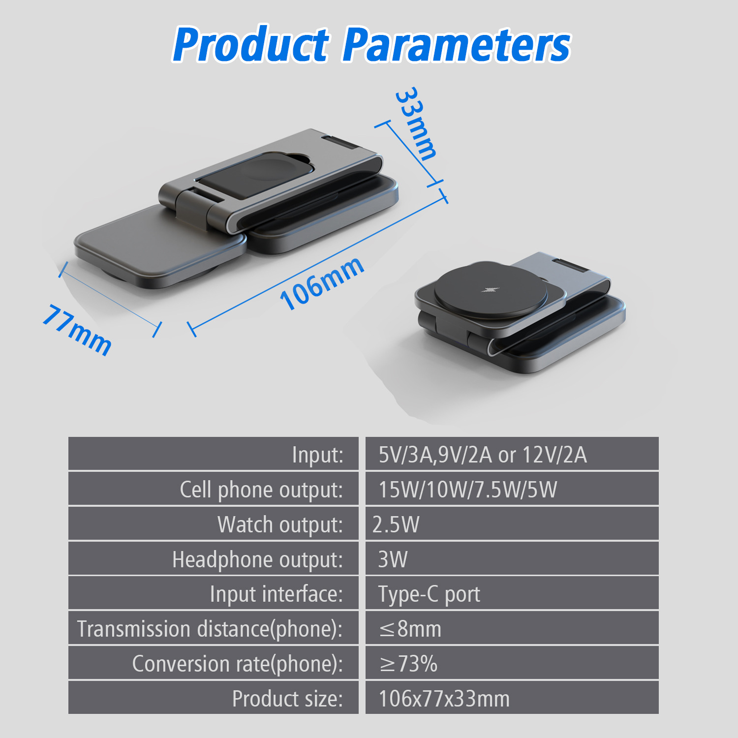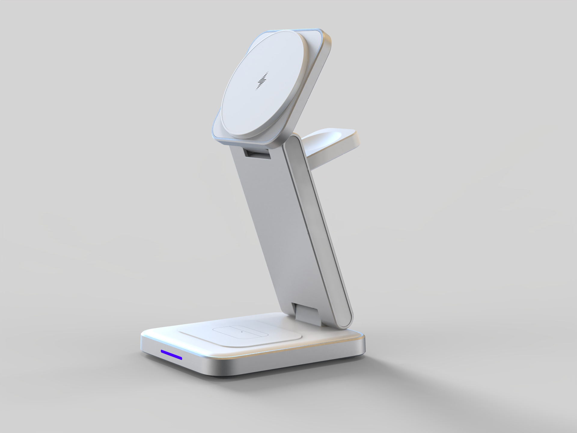 Three-in-One Charging: Simultaneously charges phone, watch, and earbuds wirelessly.