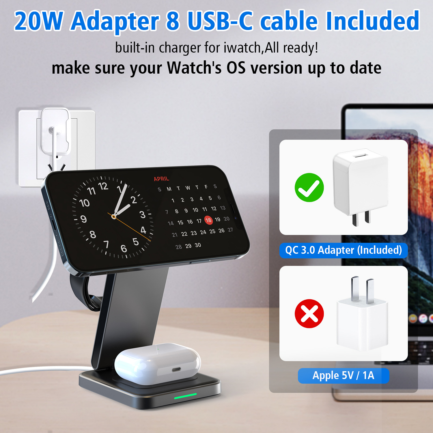Universal Compatibility: Works with Apple iPhone, AirPods, Apple Watch, and other Qi-enabled devices.
