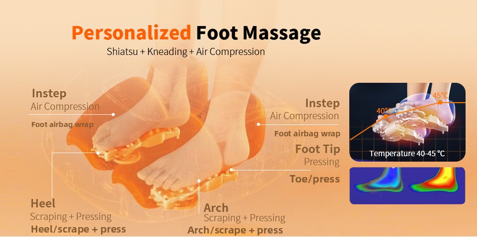 Smart Airbag Technology: Features intelligent air compression for comprehensive foot massage