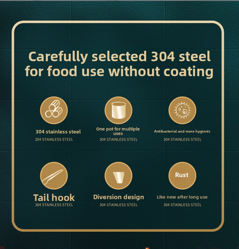 Material: 304 stainless steel or 201 stainless steel (varies by option)