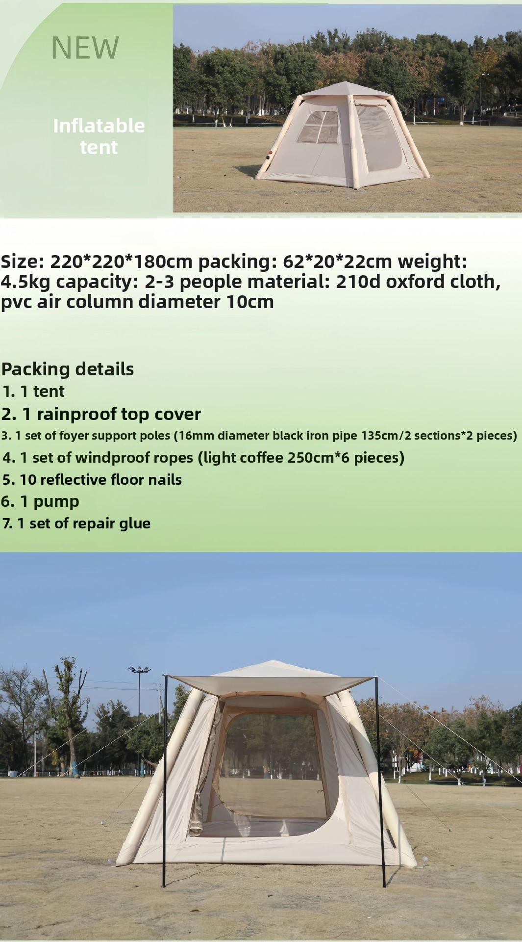 4.85sqm Main Hall 420D Tent / 3000mm Waterproof OxfordSU00063661-4.85sqm Main Hall 420D Tent-3000mm Waterproof Oxford $555.00/ea |