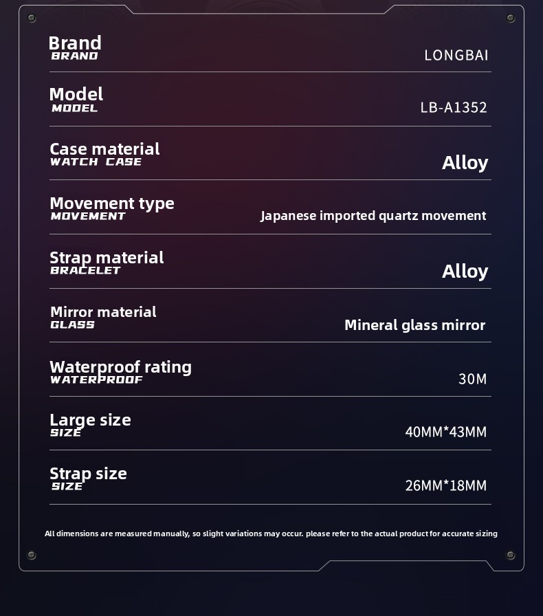 Quartz Movement: Precise timekeeping with reliable quartz mechanism.