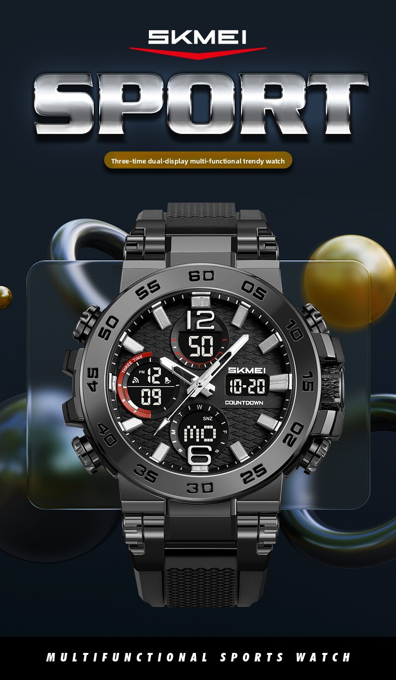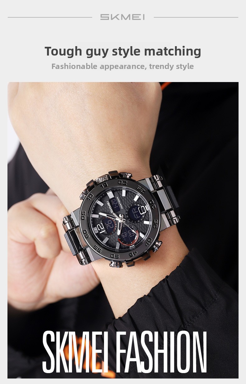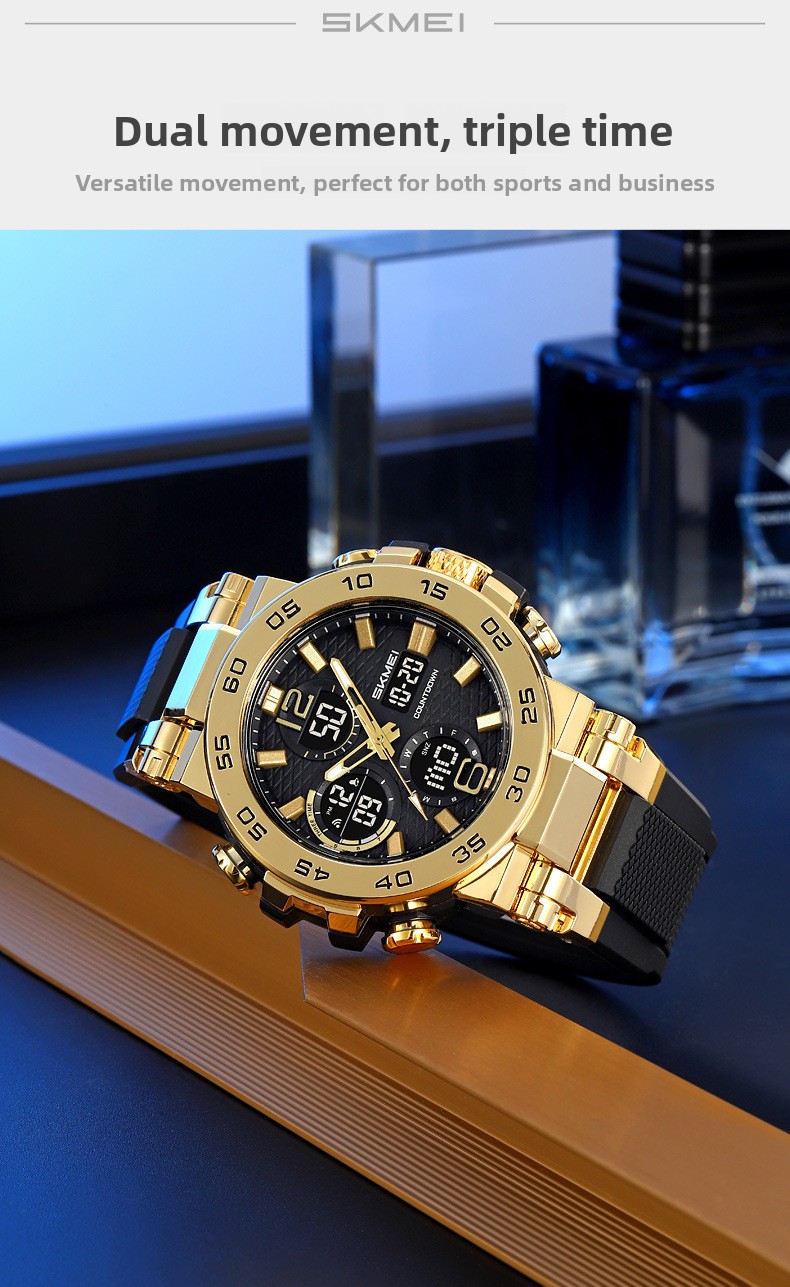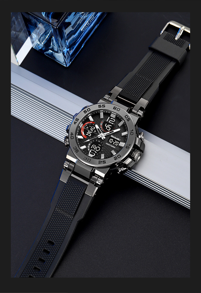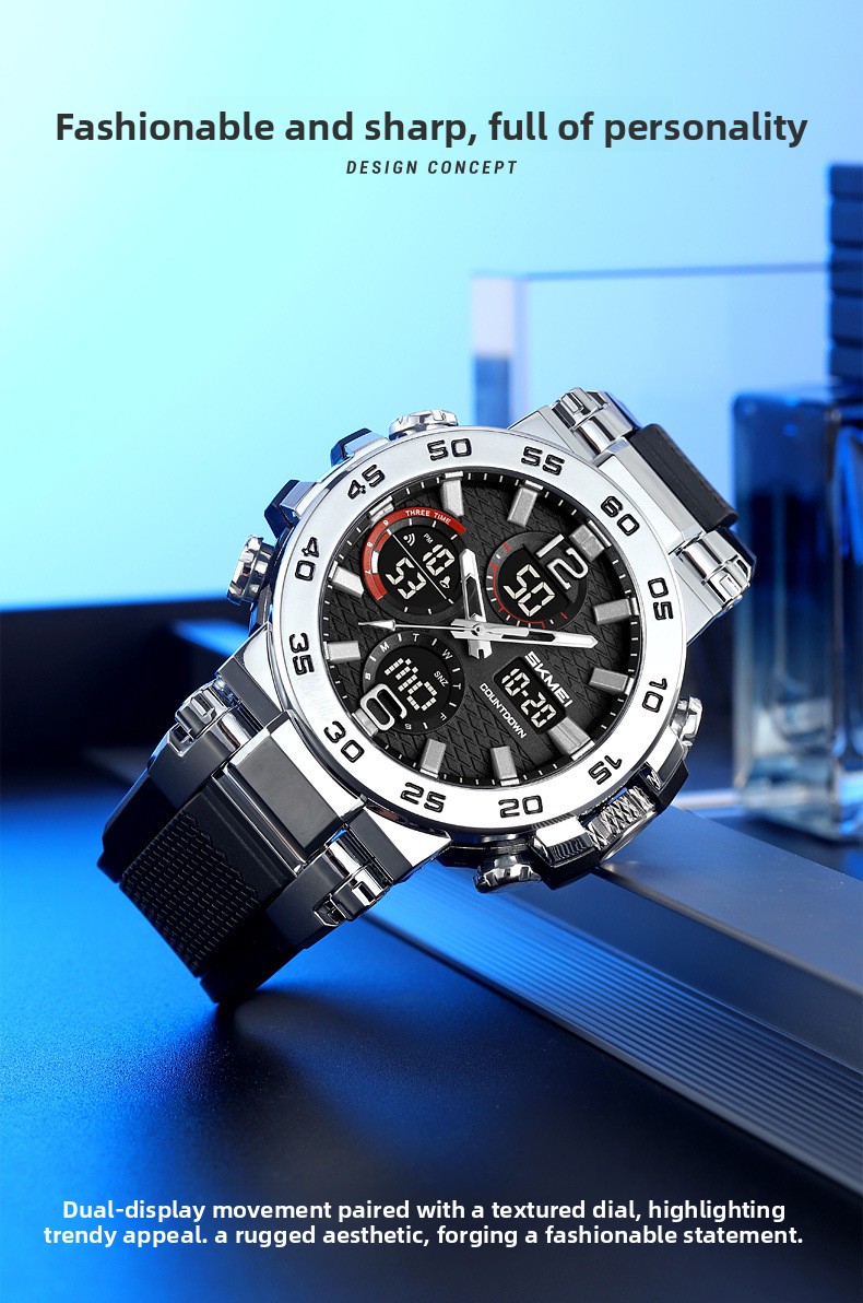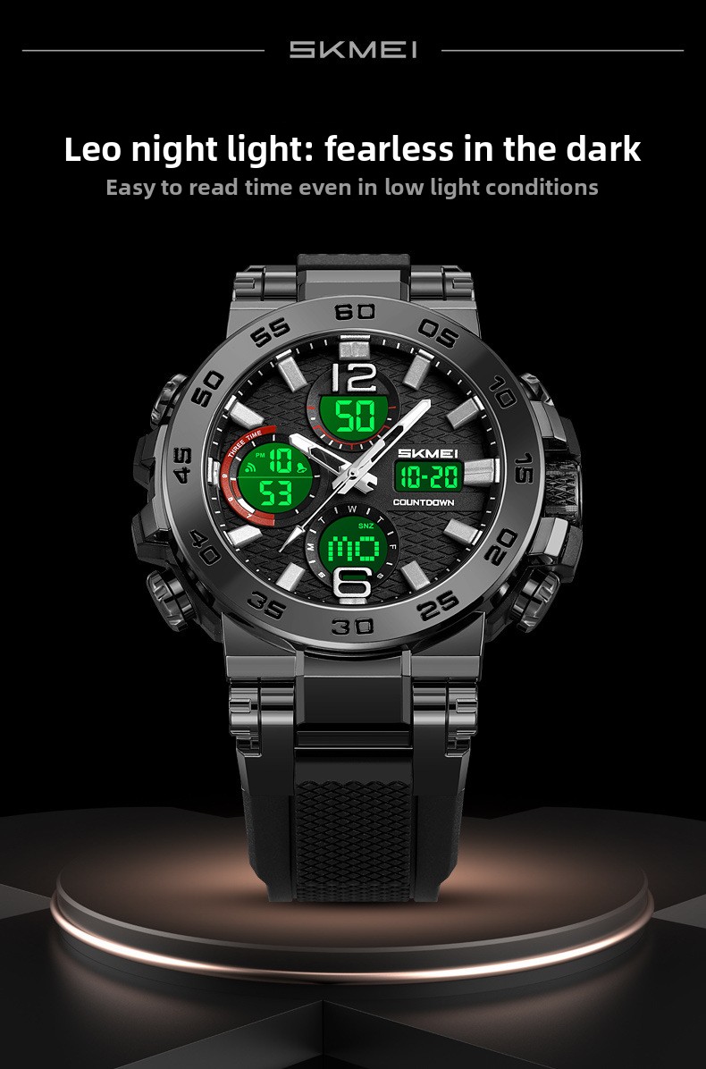 Dual Display: Analog hands combined with digital screen for clear readability.