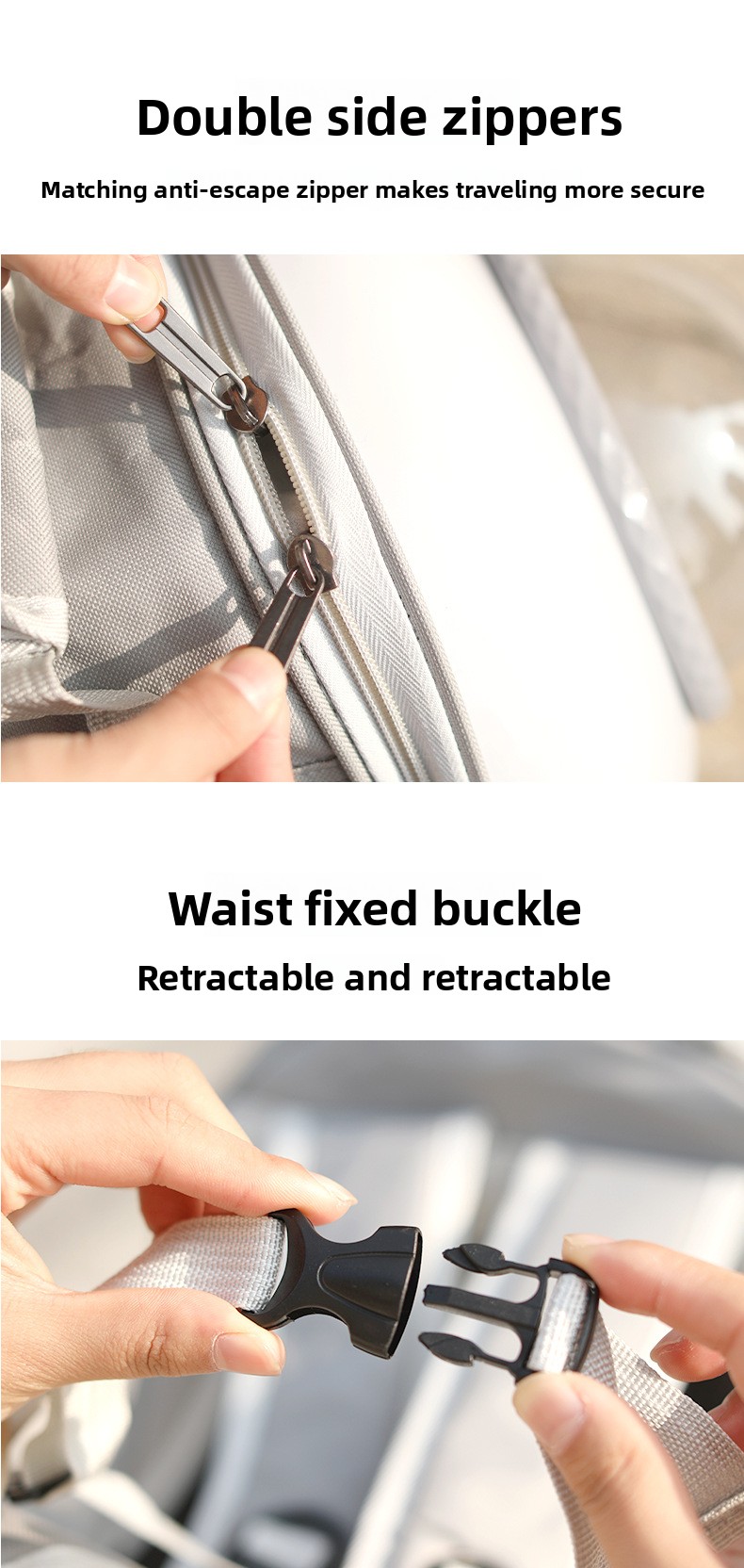 Safety Features: Secure zipper closure and breathable mesh panels ensure pet safety and comfort.