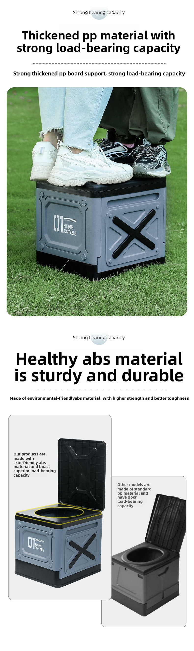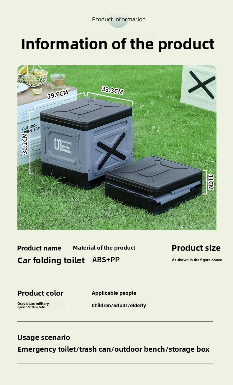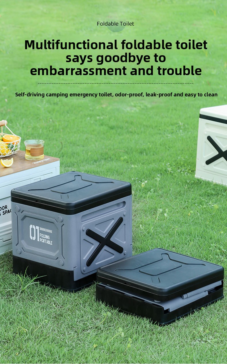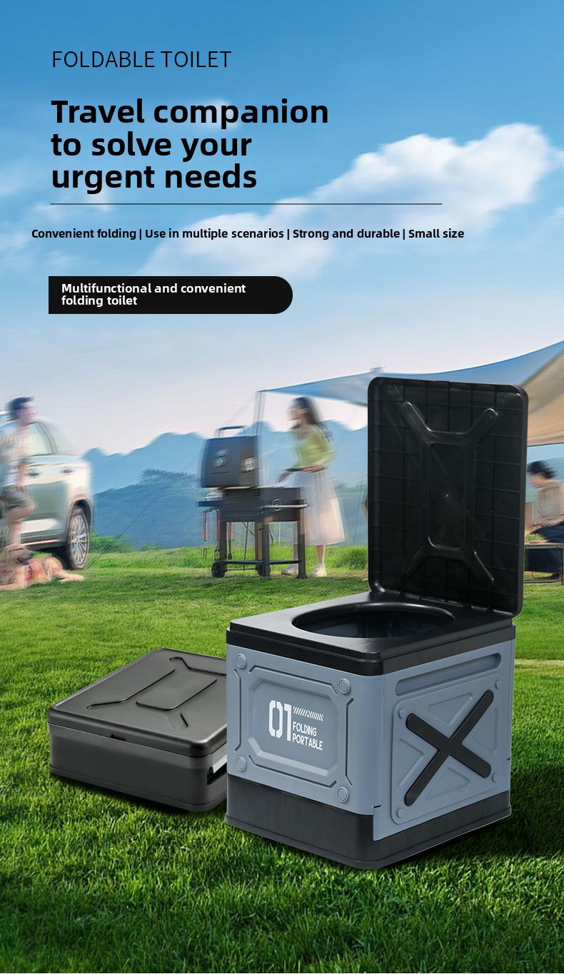 Portable Folding Toilet: Compact and foldable design for easy storage and transport during outdoor activities.