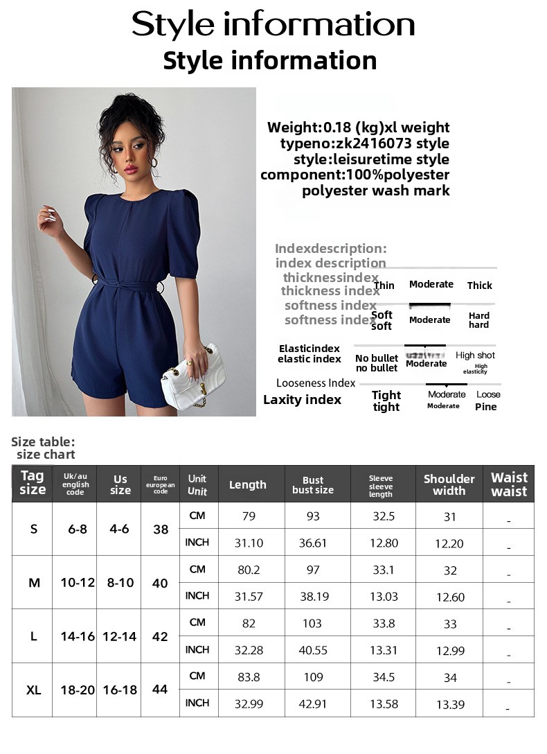 Puff Sleeve Design: Stylish puff sleeves add a fashionable and elegant touch to the jumpsuit.
