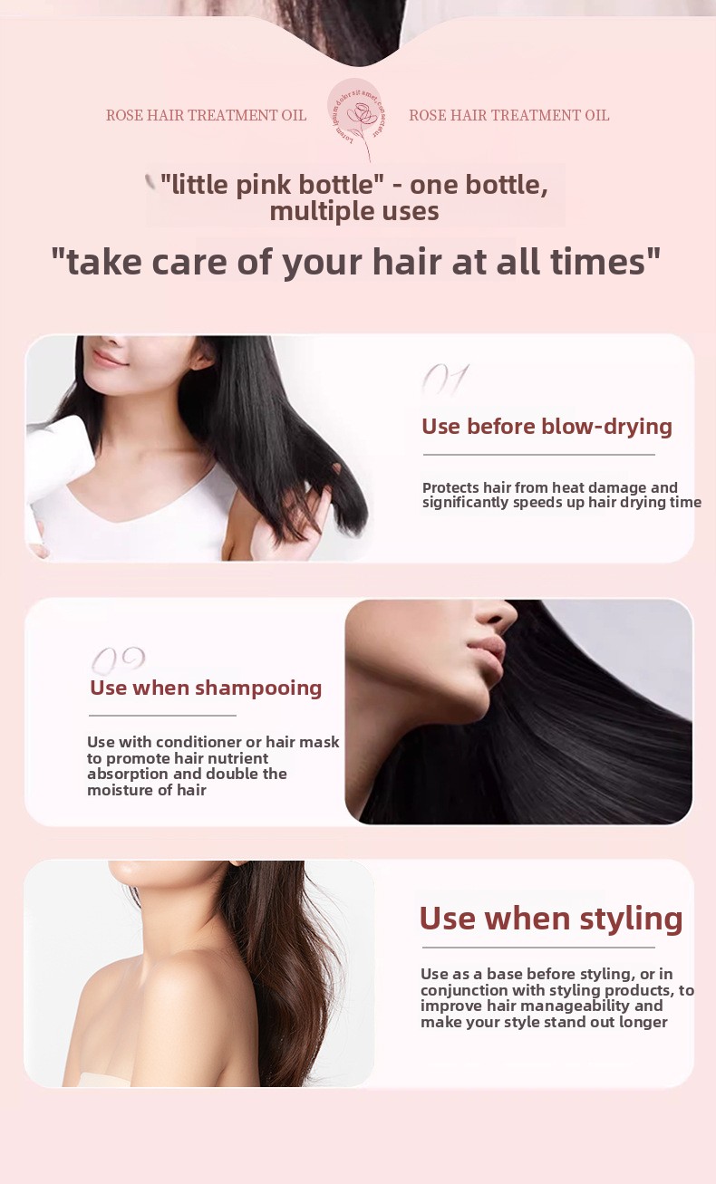 Rose Fragrance: Features a lasting rose scent for pleasant hair care experience