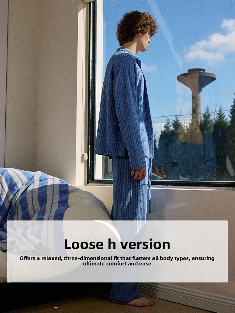 Lake Blue Navy Striped Suit / MSU00077110-Lake Blue Navy Striped Suit-M