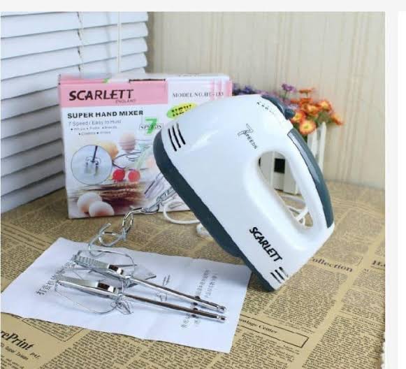 The Scarlett Egg Beater is a versatile kitchen tool designed to simplify your food preparation. It functions as an electric hand mixer, blender, beater, and cream maker, offering seven precise speed settings to handle a wide range of mixing tasks with ease. Equipped with two durable stainless steel beaters and two dough hooks, it efficiently mixes, whips, and kneads ingredients for perfect results every time. Ideal for both amateur cooks and baking enthusiasts, this appliance ensures consistent texture and saves time in the