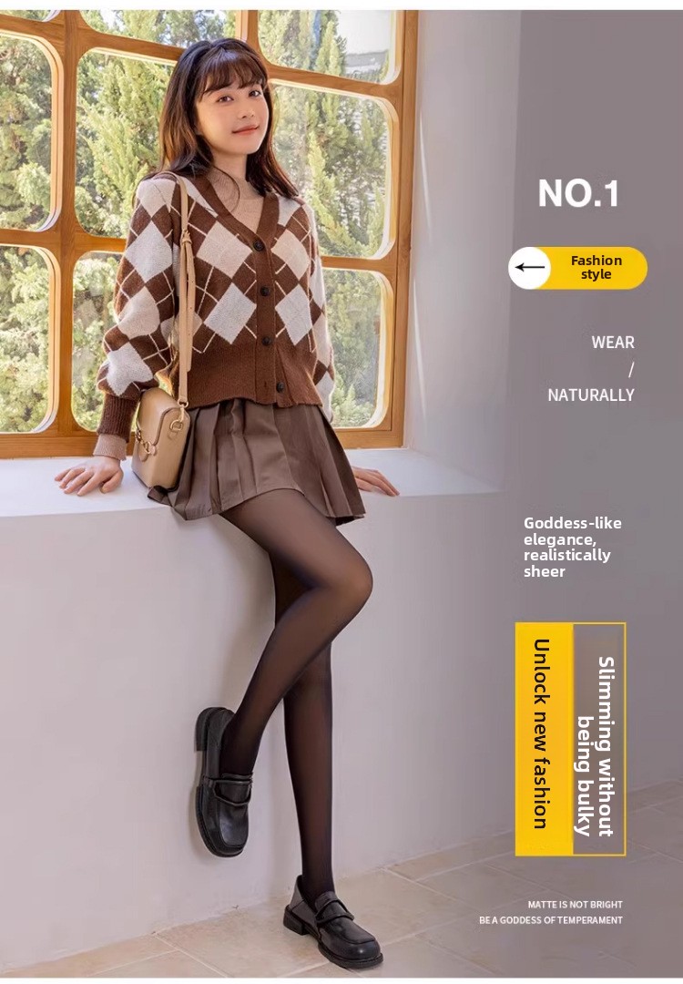 Flat Waist Coffee Sheer / 220 Fleece-lined Plus Size SU00055094-Flat Waist Coffee Sheer-220 Fleece-lined Plus Size