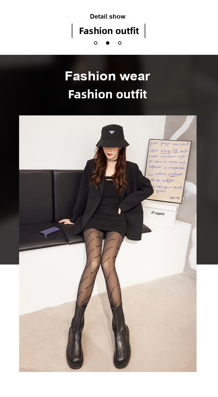 Flat Waist Black Sheer Footed / 320 Thick Fleece Plus Size SU00055094-Flat Waist Black Sheer Footed-320 Thick Fleece Plus Size